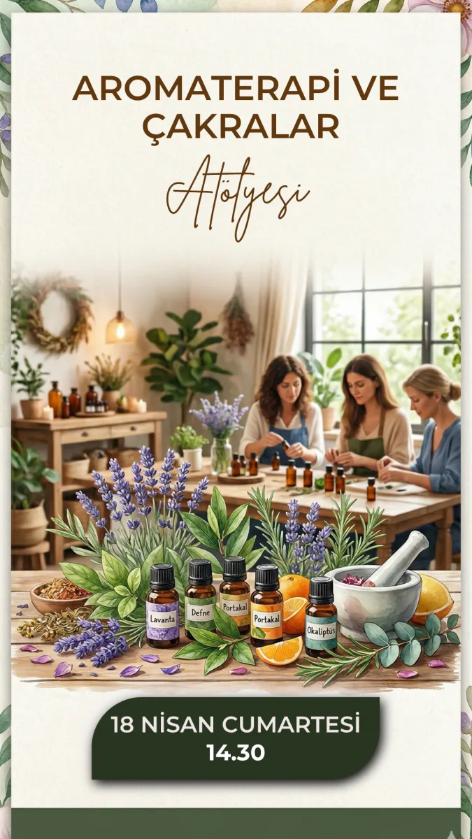 Aromaterapi ve Çakralar Atölyesi, koku, enerji ve farkındalık çalışmalarını bir araya getiren bütünsel bir deneyim sunar. Atölye boyunca belirli aromaterapi yağlarının etkilerini tanırken, çakra sistemi ile ilişkilerini de keşfedeceğiz.